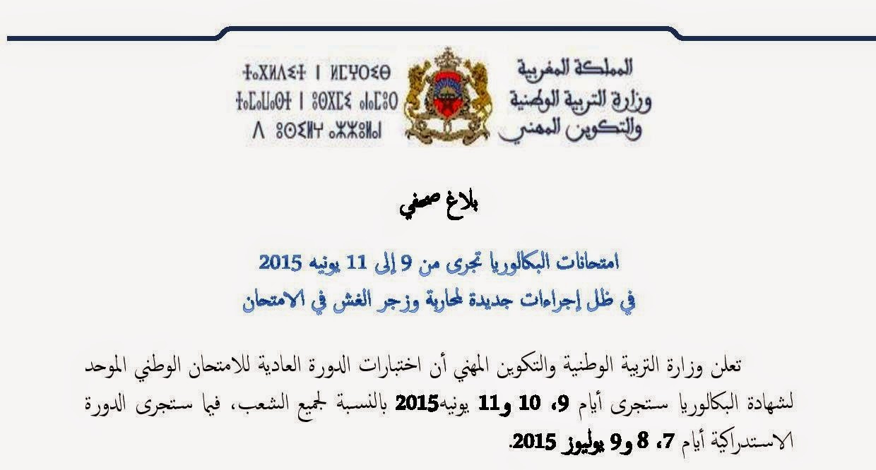 للمترشحين الأحرار وللسنة الأولى من سلك البكالوريا يومي 15 و16 يونيه 2015